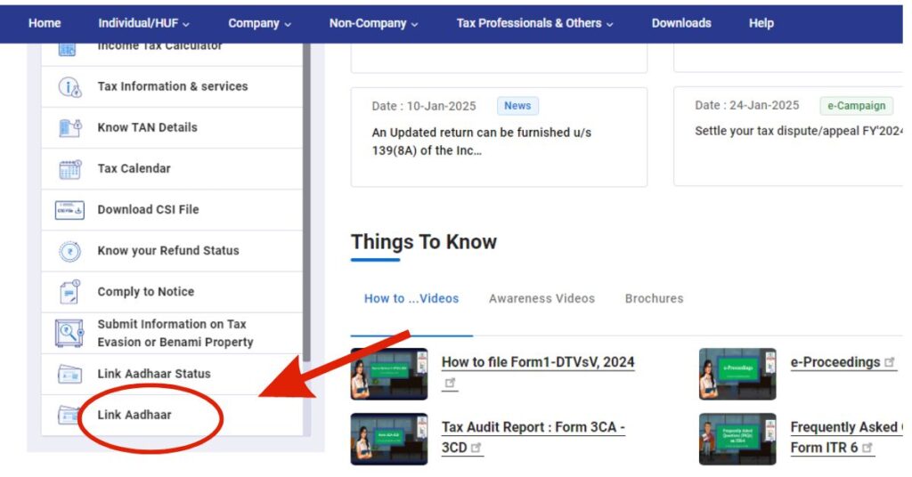 Go to the Income Tax e-Filing website. - Click on ‘Link Aadhar’